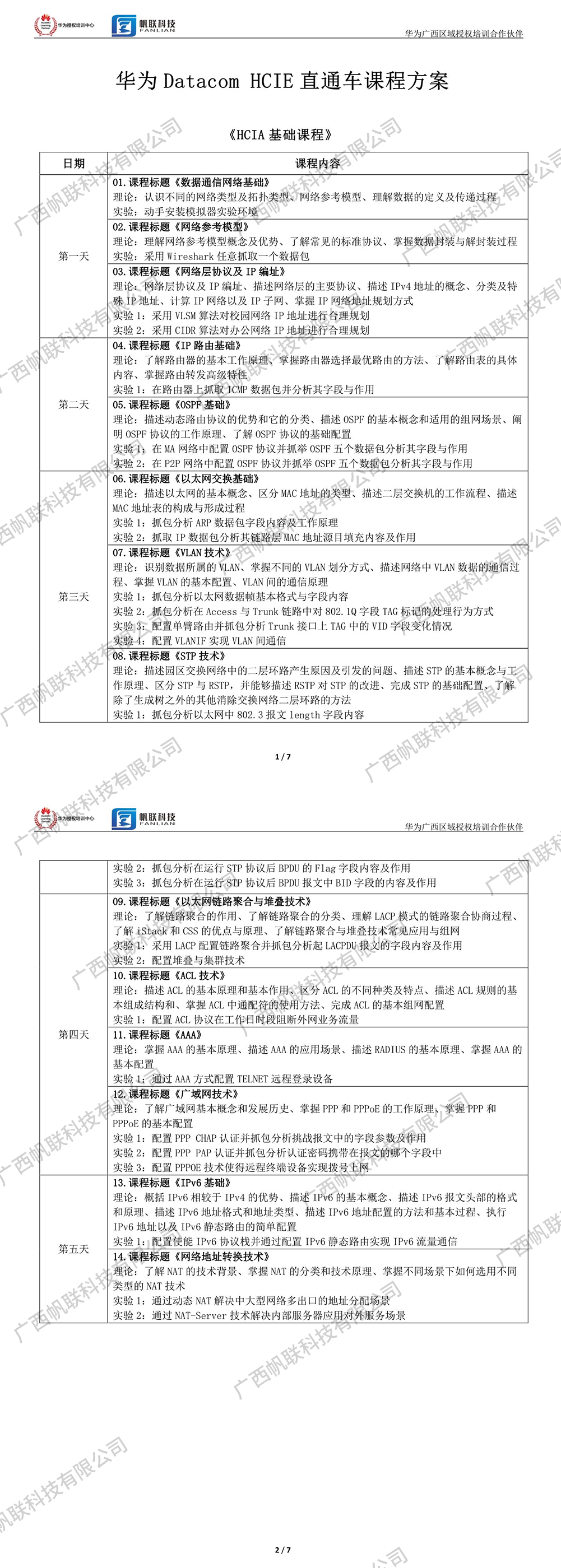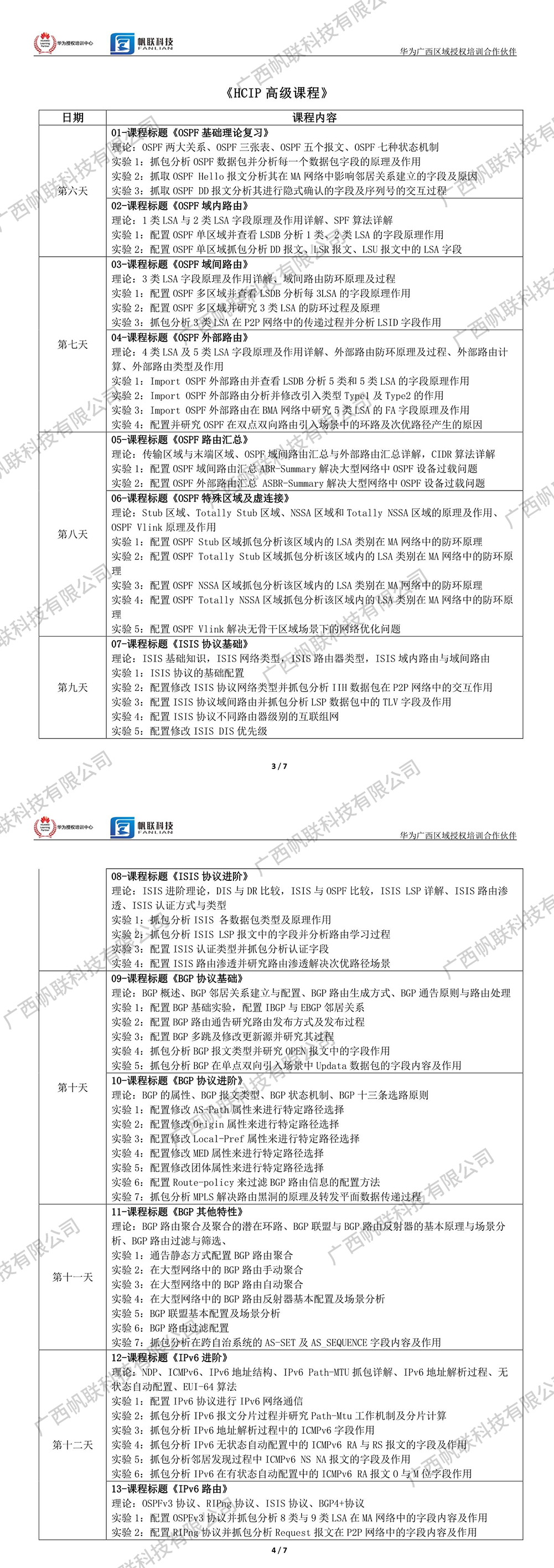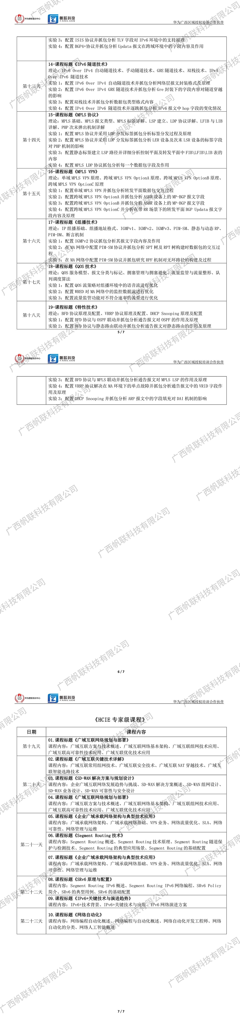 六、報(bào)名聯(lián)系方式 華為授權(quán)培訓(xùn)合作伙伴廣西帆聯(lián)科技有限公司 聯(lián)系方式:黃老師177-7621-1791 聯(lián)系電話:0771-3185755 公司主頁(yè):m.xiputuo.cn 公司地址:南寧市大學(xué)東路162號(hào)東盟財(cái)經(jīng)廣場(chǎng)1402室 七、課程安排和課程內(nèi)容 |